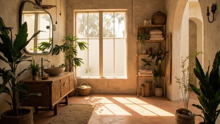 A true boho bathroom balances tactile richness with thoughtful restraint: choose durable materials, prioritize scale and moisture-friendly finishes, and layer in plants, woven textures, and sculptural pieces like curved tubs or rattan mirrors. Make concrete decisions—paint finishes, tub material, plant species—upfront to avoid remodeling reversals later; the result is a relaxed, lived-in bathroom that performs as well as it looks.