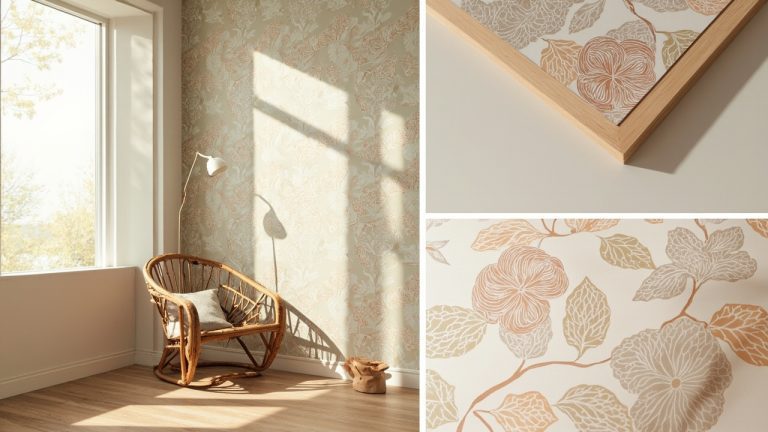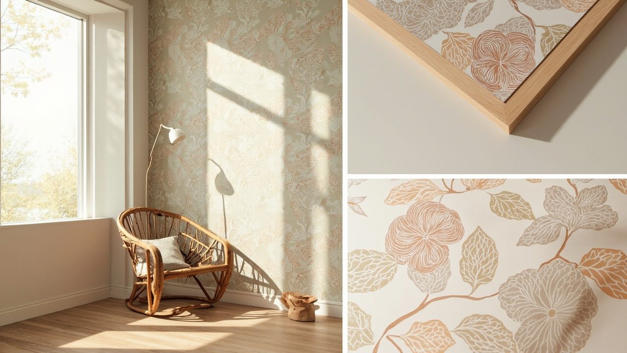 Material choice matters: a non-woven or paste-the-wall vinyl with a slight texture will hide seams on large motifs and withstand light cleaning. Keep accompanying textiles simple—linen or slub cotton in solid colors—so the florals remain the room’s focal point and don’t compete with patterned cushions.