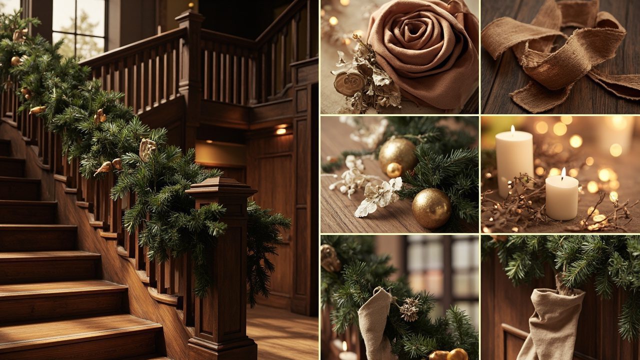 Introducing warm wood tones—stained treads, a walnut handrail, or reclaimed-wood trim instantly creates a cozy holiday atmosphere that plays well with faux fur, plaid, and cider-scented candles.